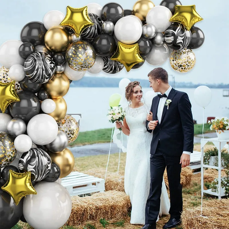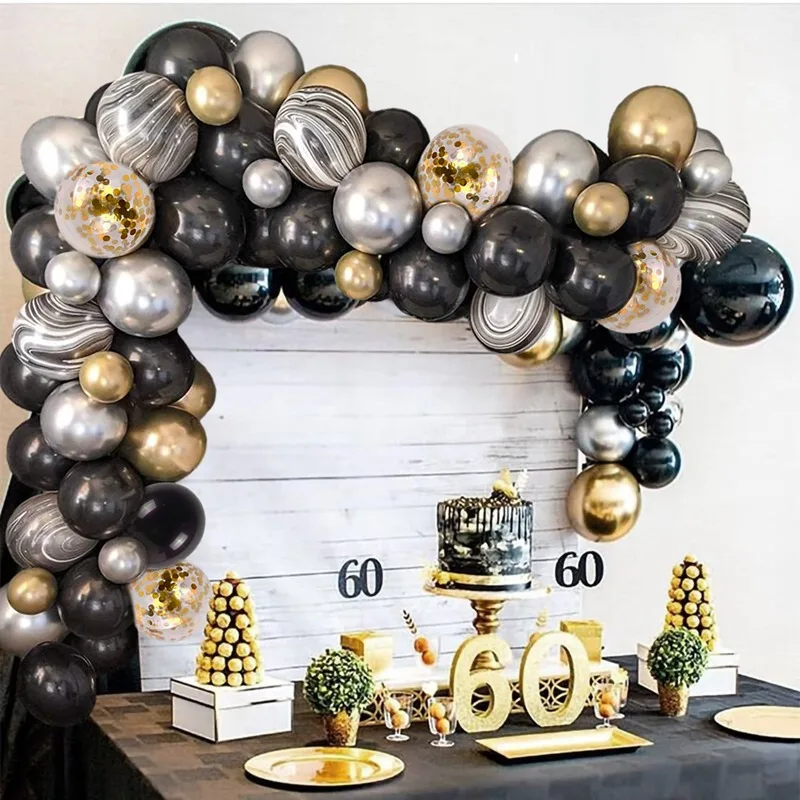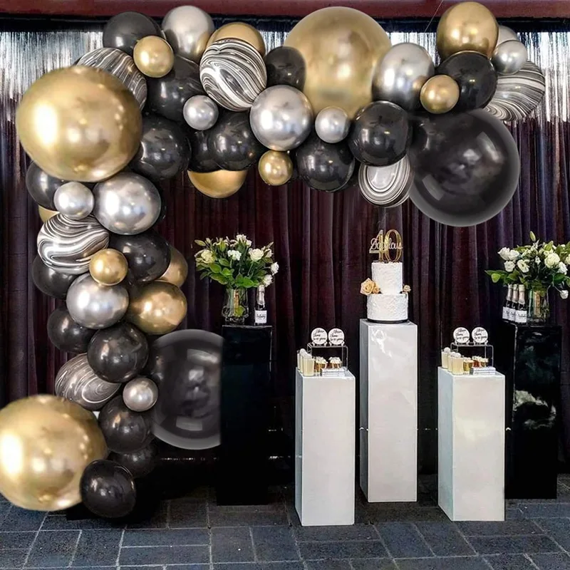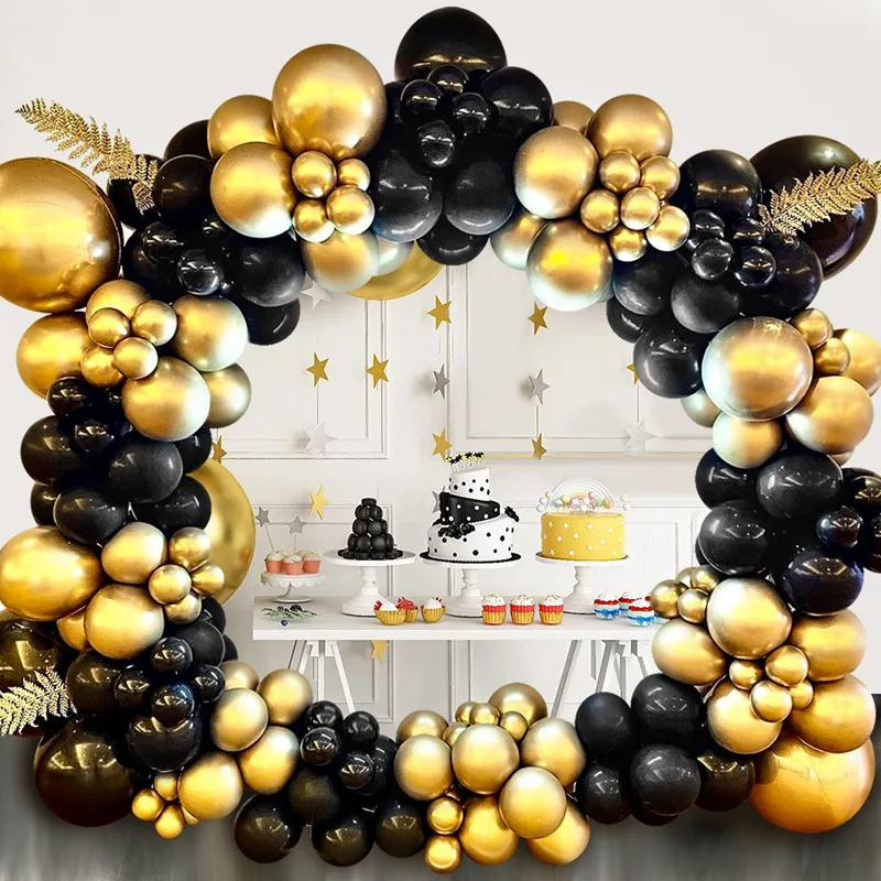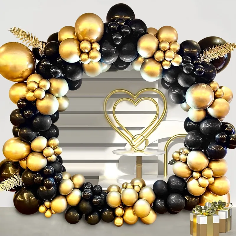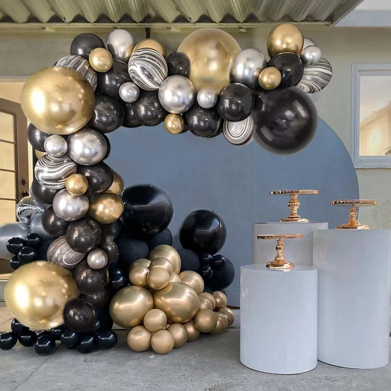 Guirnalda de Globos Negro y Dorado para Fiestas – Arco de Globos Decorativo para Cumpleaños, Bodas, Baby Shower y Despedidas de Soltera