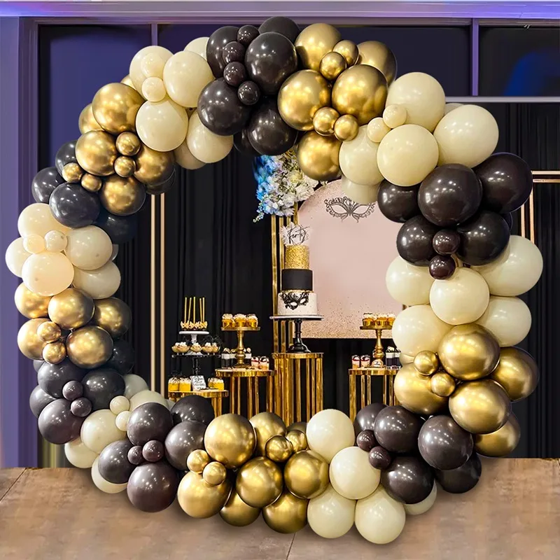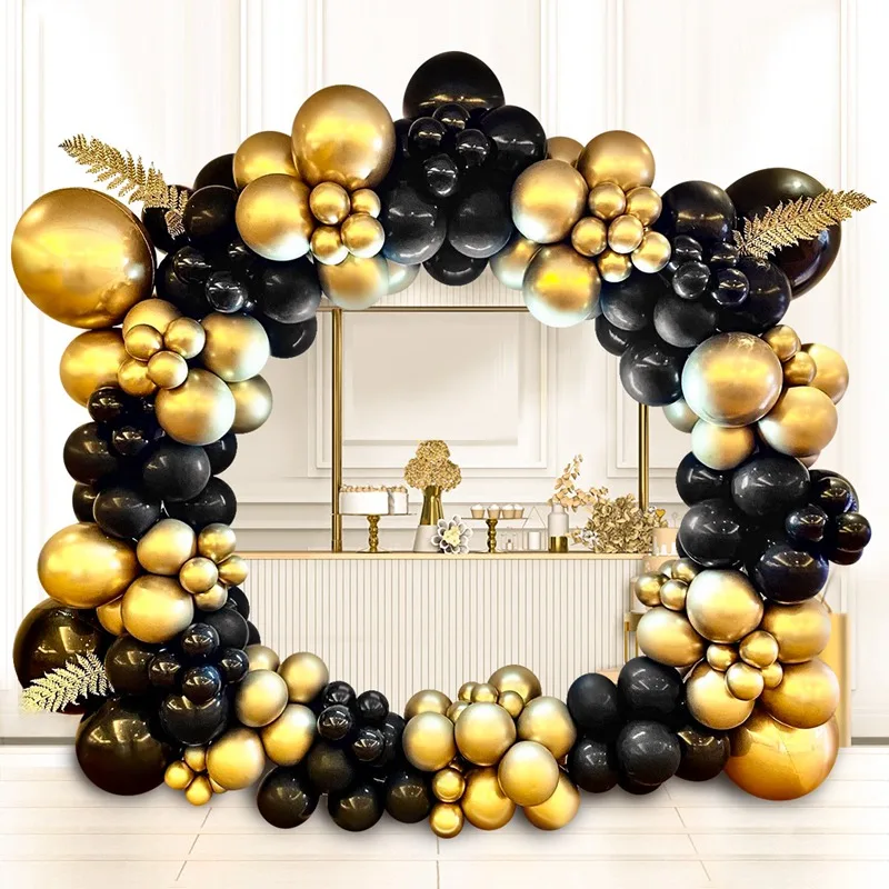 Dale un toque elegante y moderno a cualquier celebración con esta guirnalda de globos negro y dorado , perfecta para crear un impactante arco decorativo de globos . Su combinación de colores negro y oro aporta sofisticación y estilo, ideal para eventos especiales y fiestas temáticas.